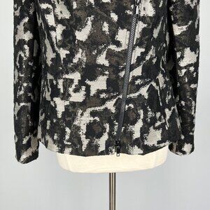 Lafayette 148 NY Womens Animal Print Moto Jacket Black Gray Wool Blend size 14