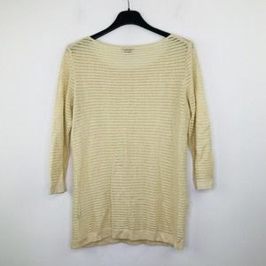 Lafayette 148 NY Womens Small Sweater Beige Linen Open-Knit 3/4 Sleeve Flaw BU16