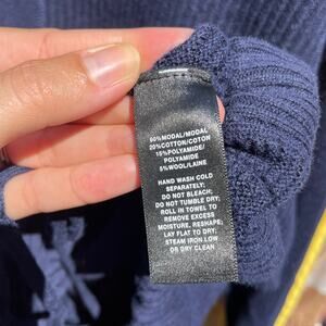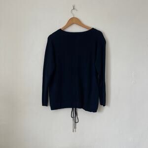 Lafayette 148 – Navy Blue Cinched Hem Wool Blend Sweater