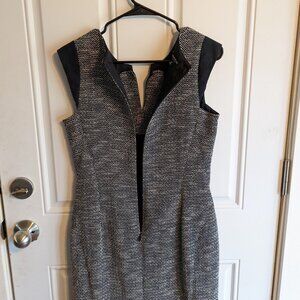 Lafayette 148 Navy Blue Sheath Dress Black White Textured Tweed Knit - Size 6