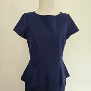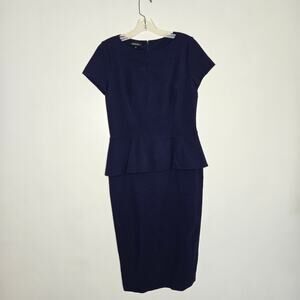 Lafayette 148 Navy Peplum Sheath Dress Short Sleeves Ponte Career Women 6