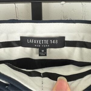 Lafayette pants size 10. Navy color dress pants. Side stripe design. Straight leg. Great condition. Smoke free home.