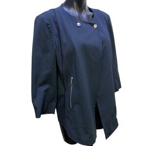 Lafayette 148 Navy Stretch Cotton Jacket Blazer Pockets Size 12
