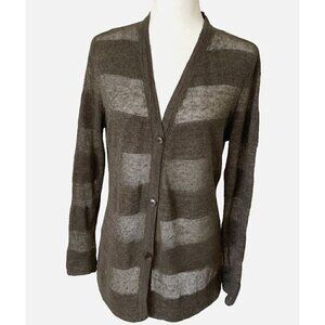 Lafayette 148 New York 100% Hem Brown Long Sleeve Button Cardigan Sweater