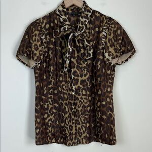 Lafayette 148 New York 100% Silk Blouse Neck Tie Button Down Animal Print Size 4