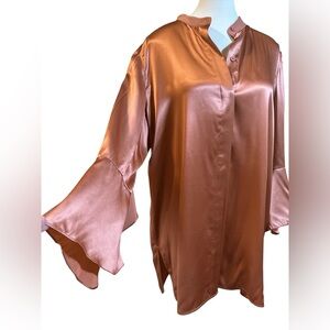 Lafayette 148 New York 100% Silk Copper Blouse with Bell Sleeves