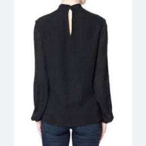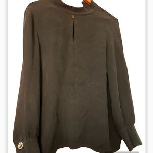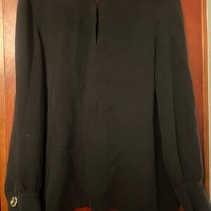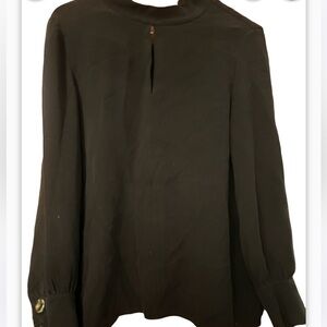 Lafayette 148 New York 100% Silk Keyhole Blouse Sz Medium Black Gold Button