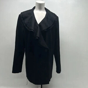 Lafayette 148 New York 100% Wool Jacket Coat 1 Button Ruffled Black Plus Size 16