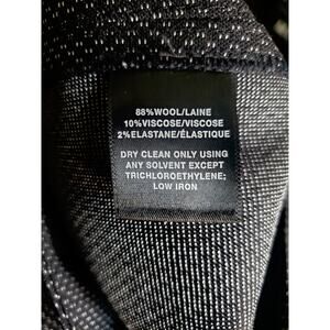 Style: Abstract print stretch wool straight leg trousers. Zip fly and hook and bar closure at waist. No pockets. 88% wool, 10% viscose, 2% elastane