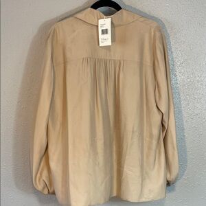 Lafayette 148 New York Beige Silk Button Down Blouse – Career Top Size 12 NWT