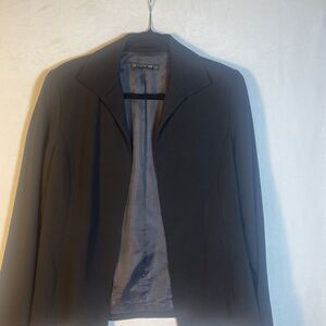 Lafayette 148 New York Black 100% Wool Open Front Blazer Jacket Size 6 USA Made