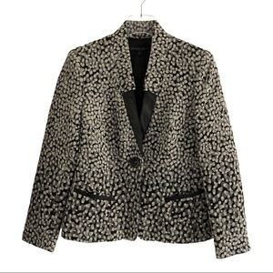 Lafayette 148 New York Black And White Wool Blend Blazer Leather Trim Size 6