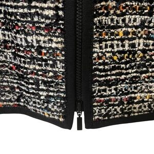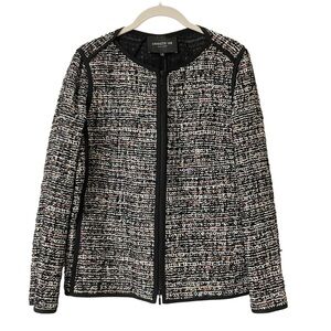 Experience timeless elegance with the Lafayette 148 New York Black Blazer. This sophisticated piece features a sleek, collarless design with a full-length zipper, crafted from a textured tweed fabric that adds depth and style to any ensemble.