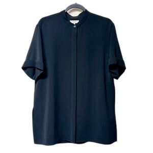 New condition! Timeless, refined, and effortlessly chic. This classic black Lafayette 148 blouse features a sophisticated notched collar, hidden button front, and a flattering relaxed tunic silhouette. The elevated cotton blend gives it structure while remaining soft and wearable.