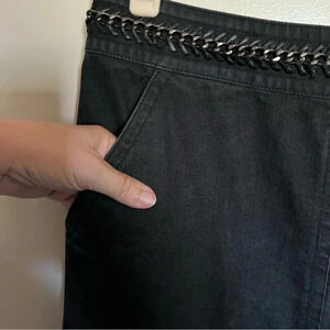 Lafayette 148 New York Black Denim Skirt with Chain Belt Detail Size 10