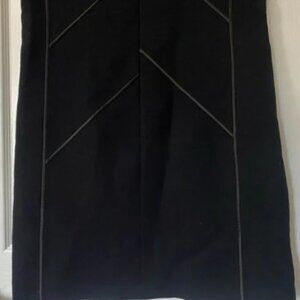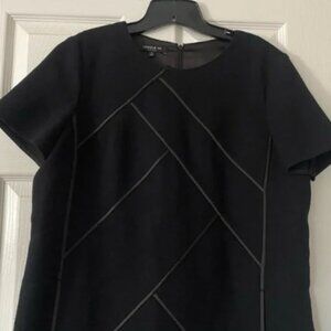 Lafayette 148 New York Black Henora Wool Shift Dress w/ Charmeuse Piping Size L