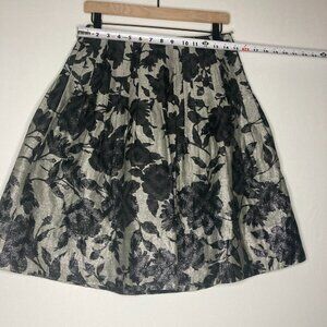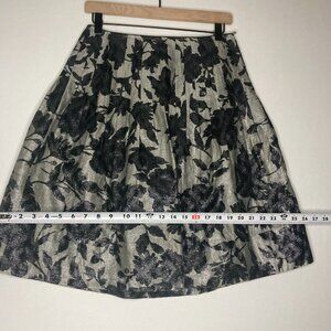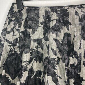 Lafayette 148 New York Black, Silver, Gray Metallic Floral A-Line Skirt Size 4