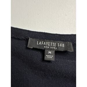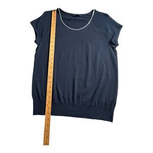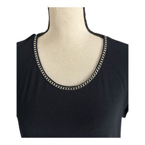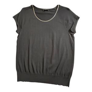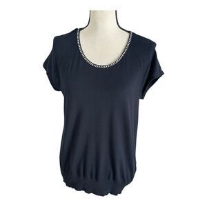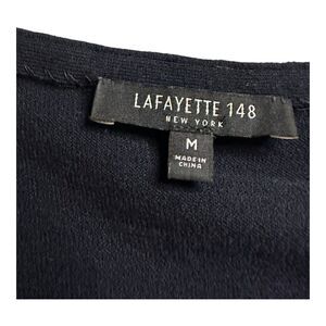 Lafayette 148 New York Black Stretch Short Sleeve Metal Neck Size Medium