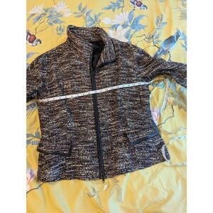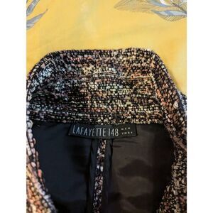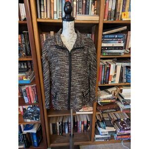 Lafayette 148 New York Black Tweed Zip Front Jacket Faux Leather Trim SZ 10