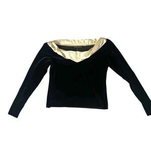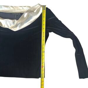 Lafayette 148 New York Black Velvet Blouse with Ivory Satin Collar