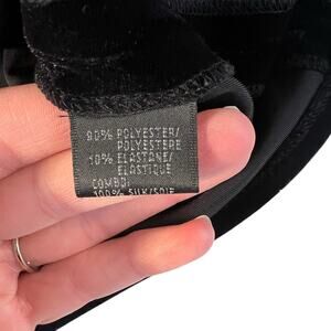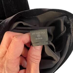 Elevated and timeless, this Lafayette 148 New York blouse is crafted in rich black velvet with a striking ivory satin draped collar, creating a refined contrast that feels both classic and modern. The softly structured neckline frames the collarbone beautifully, making this piece ideal for evening events, cocktail gatherings, or elegant holiday occasions.