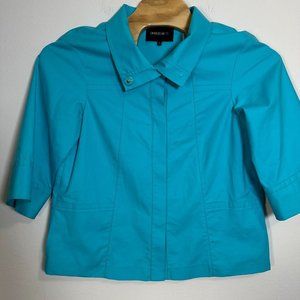 Lafayette 148 New York Blazer Turquoise Blue Wide Arms Snap