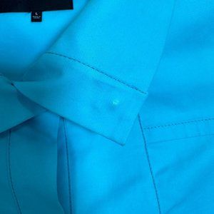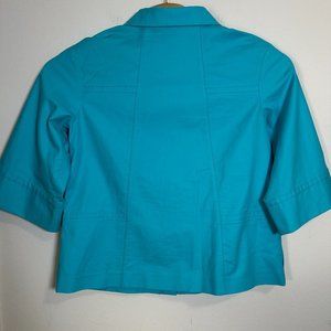 Lafayette 148 New York Blazer Turquoise Blue Size L Large Wide Arms Snap