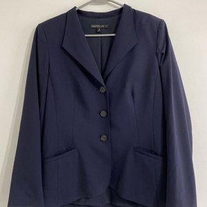 Lafayette 148 New York Blazer Womens 10 Blue Wool Blend Three Button Long Sleeve