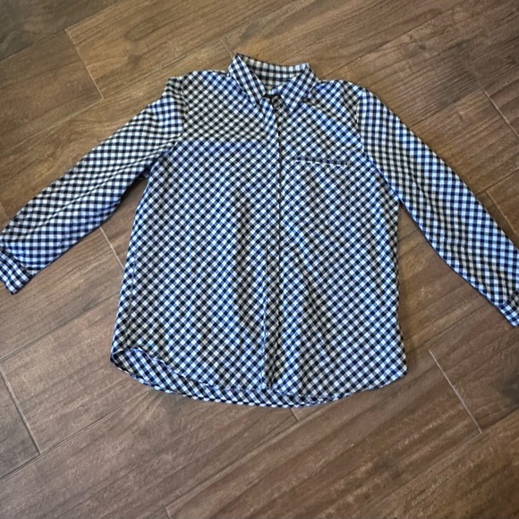 Chic button-down with a black and blue checkered design. Perfect for versatile styling.