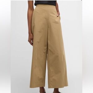 Experience timeless elegance with these tan wide-leg pants from Lafayette 148 New York. Crafted in a structured cotton-blend, they feature a high-waisted design and a minimalist silhouette, perfect for both casual and business casual settings.