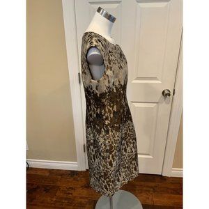 Lafayette 148 New York Brown & Tan Leopard Print Sheath "Josette" Dress, Size 12