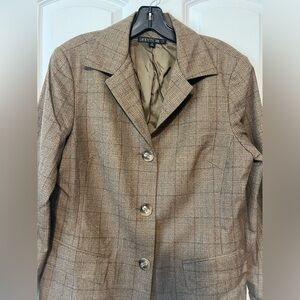 Lafayette 148 New York Brown Tan Plaid Virgin Wool Academy Blazer Jacket size 12