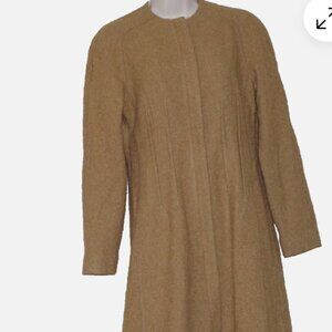 Lafayette 148 New York Brown Wool Crew Neck Zip Trench Coat Collarless ZipSize:2