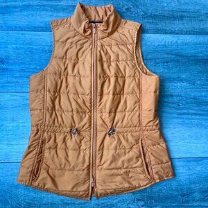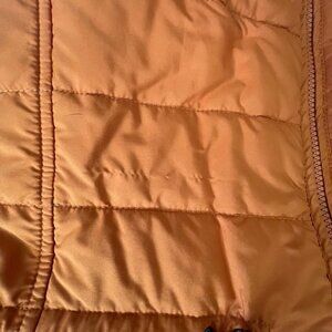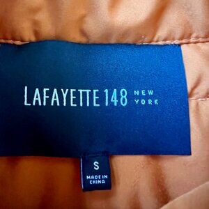 Lafayette 148 New York Burnt Orange Quilted Puffer Vest Pockets Warm Office Hike in womens size small. Gorgeous color. Features front slip pockets, toggle at waist to keep the wind out, and zip up front. A few small snags on the jacket (minimal but wanted to mention) see photos. Smoke free home.