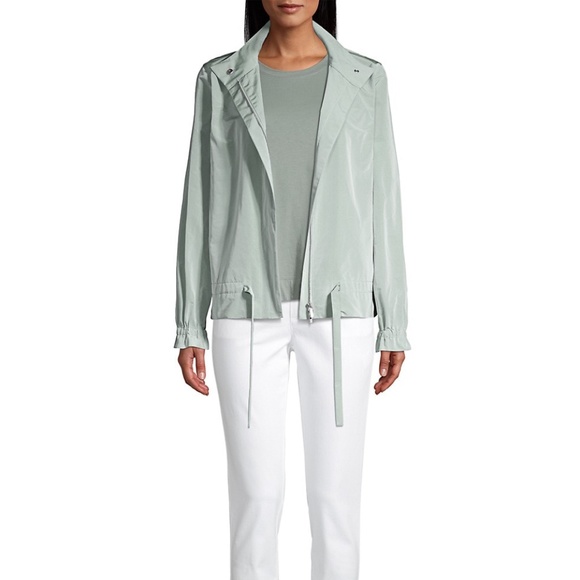 Lafayette 148 New York Chapman Drawstring Jacket. Lightweight and perfect for Spring. Color: Atlas Iridescent (pale mint green). Preowned in excellent condition.