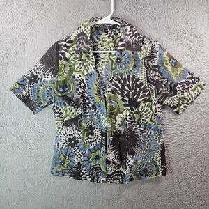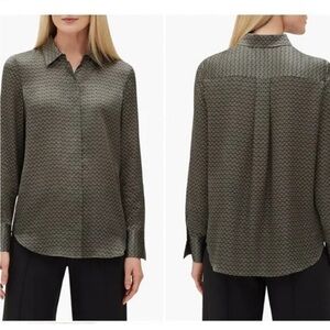 Lafayette 148 New York Chevron Print 3/4 Sleeve Button Front Blouse Size Lg NWT