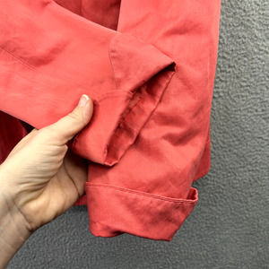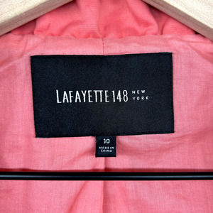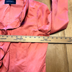 Elegant coral jacket with ruffle detail. Perfect for any occasion. Stylish and versatile.