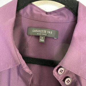 Lafayette 148 New York Dannell Eggplant Button Down Stretch Hi Low Blouse 2