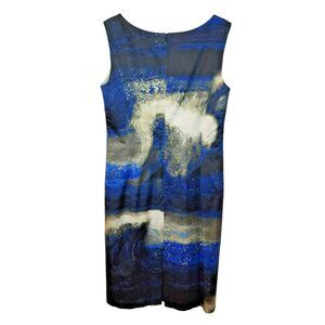 Lafayette 148 New York Dress Size 4 Sheath Abstract Print Blue Black Gold EUC