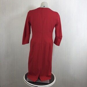 Lafayette 148 New York Wool Blend 3/4 Sleeve Center Pleated Sheath Dress Red 6