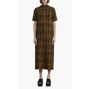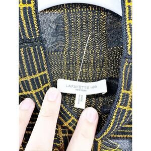 Lafayette 148 New York Fringed Plaid Mock Neck Sweater Dress Small