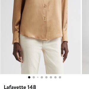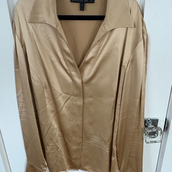 Lafayette 148 New York Gold Button Down Shirt size 8 100% silk $798 retail !!!!!