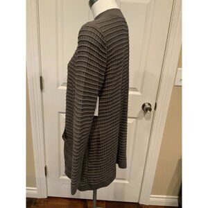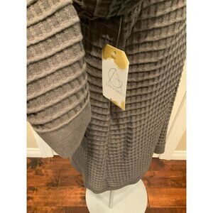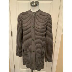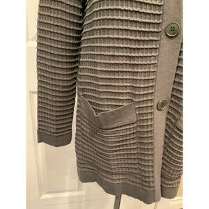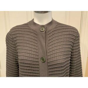 Lafayette 148 New York Gray Waffle Knit Button-Up Mock Neck Cardigan Size Medium