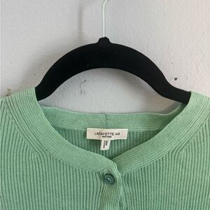 Lafayette 148 New York Green Mandarin Collar Buttoned Sweater