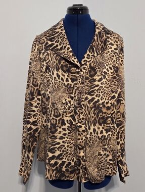Stylish blouse with abstract green and blue patterns. Perfect for our upcoming spring season. High quality cotton that breathes to keep you comfortable. Size 14