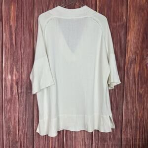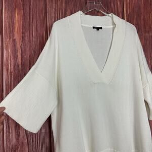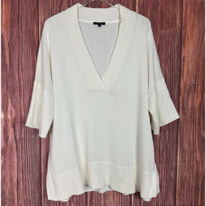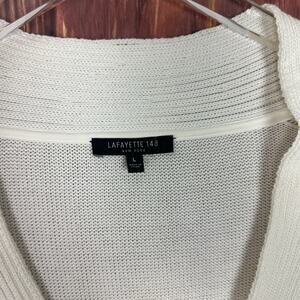 Lafayette 148 New York Ivory V Neck Sweater Ribbed Trim Silk Blend Womens Large