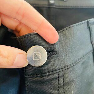 Four-pocket style; clean back pockets. Slim legs. Button/zip front; belt loops.