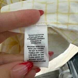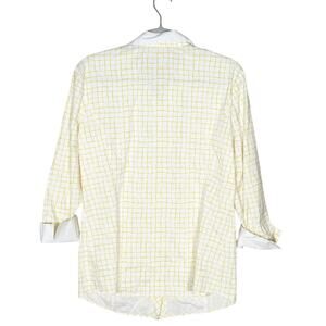 Lafayette 148 New York Long Sleeve Button Down Shirt Check Print Yellow Size 10