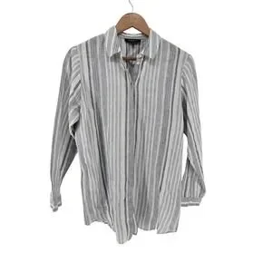 Keywords: Lafayette 148 New York, Women's Shirt, Medium, Striped, Linen Blend, Button Down, Long Sleeve, Casual, Workwear, Chic, Classic, Professional, Designer