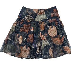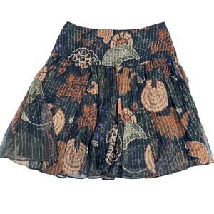 Lafayette 148 New York Metallic Printed Chiffon Mini Skirt Black Size 4